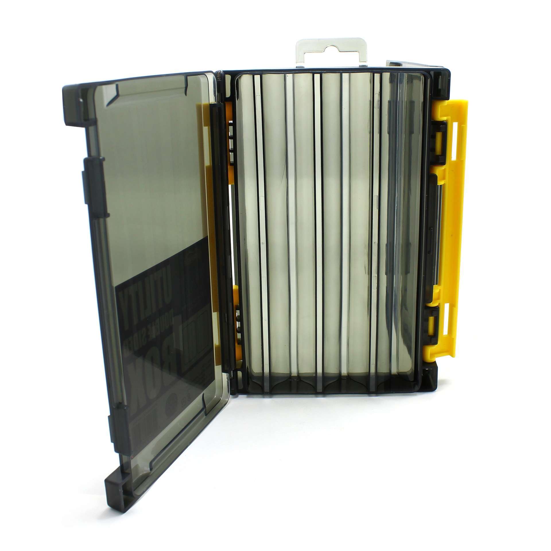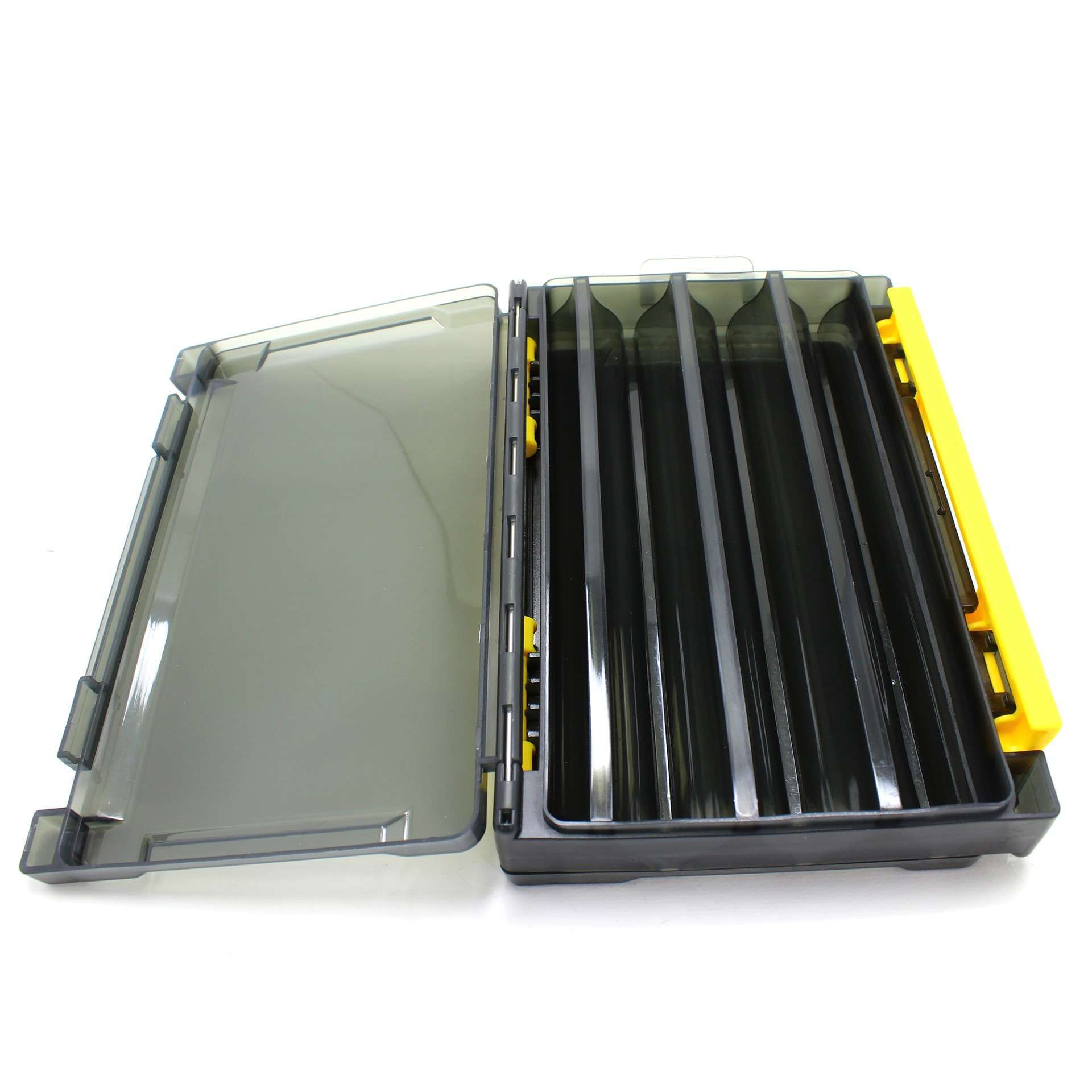 Çift tarafli iç uzunluğu 18.9 cm gelen UV korumalı 6 gözlü maket ve jig kutusu.