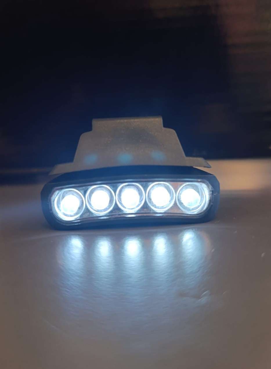 5 Ledli oynar başlıklı abs plastikten yapılma 2x2032 button pil ile çalışan şapkaya takılabilen kafa feneri. 80lümen