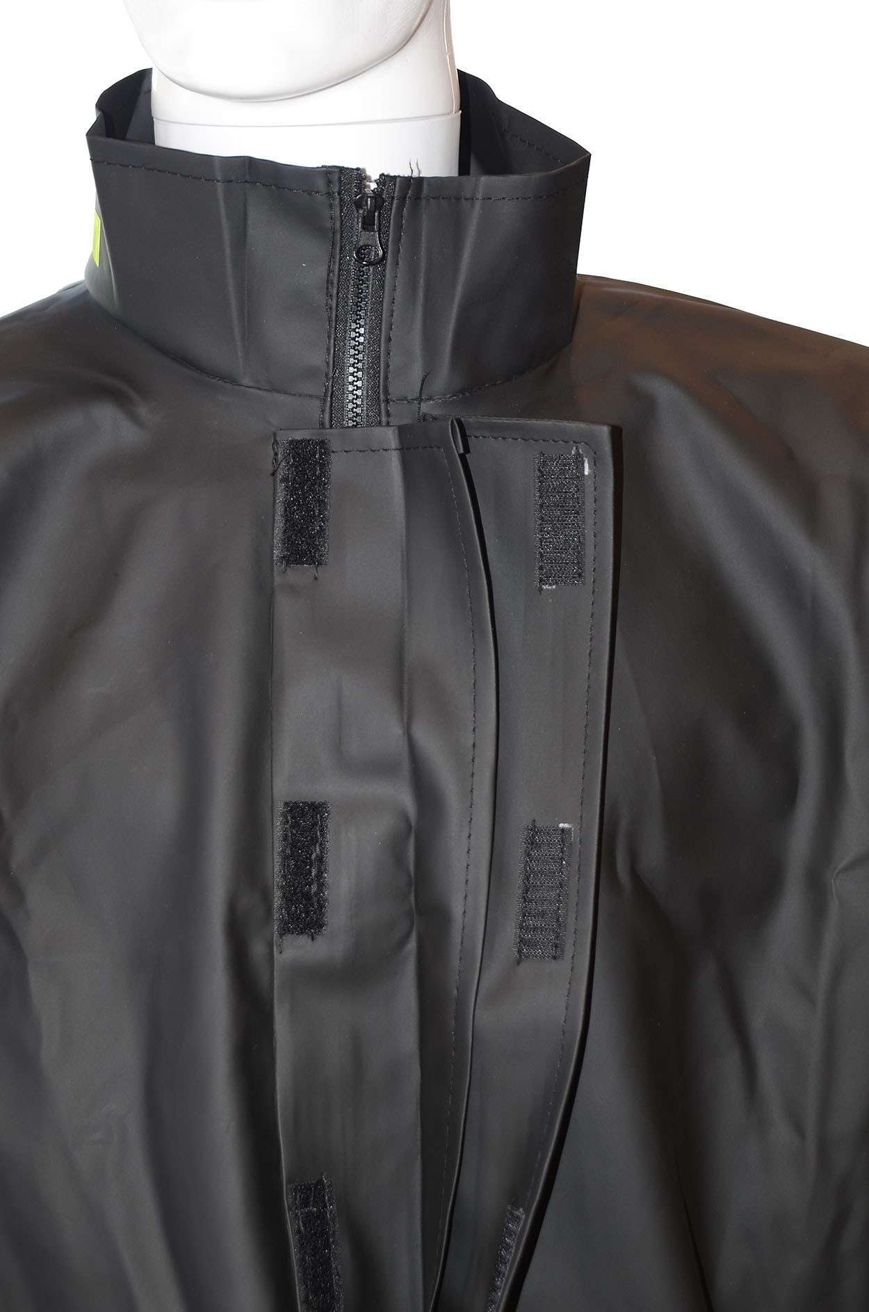 Üst yağmurlukta fermuar , fermuarı kapatan bir pat ve çırt mevcuttur