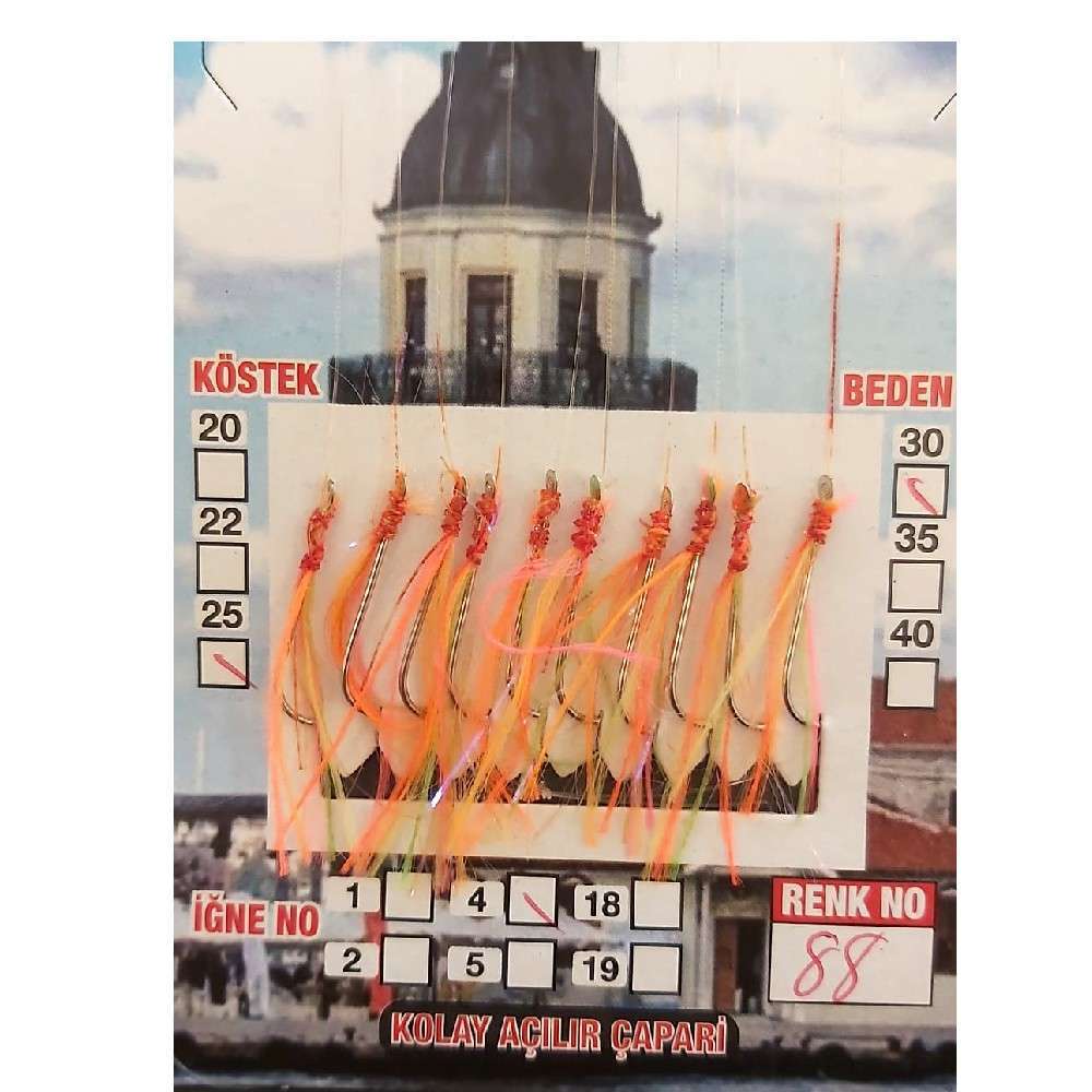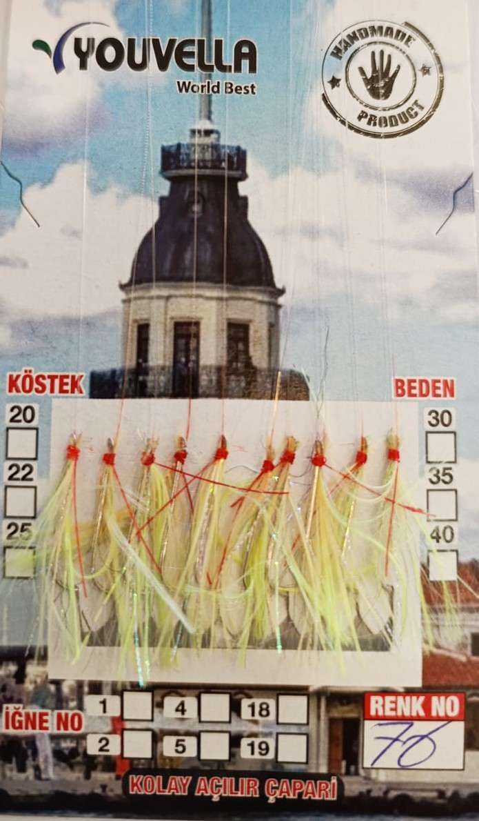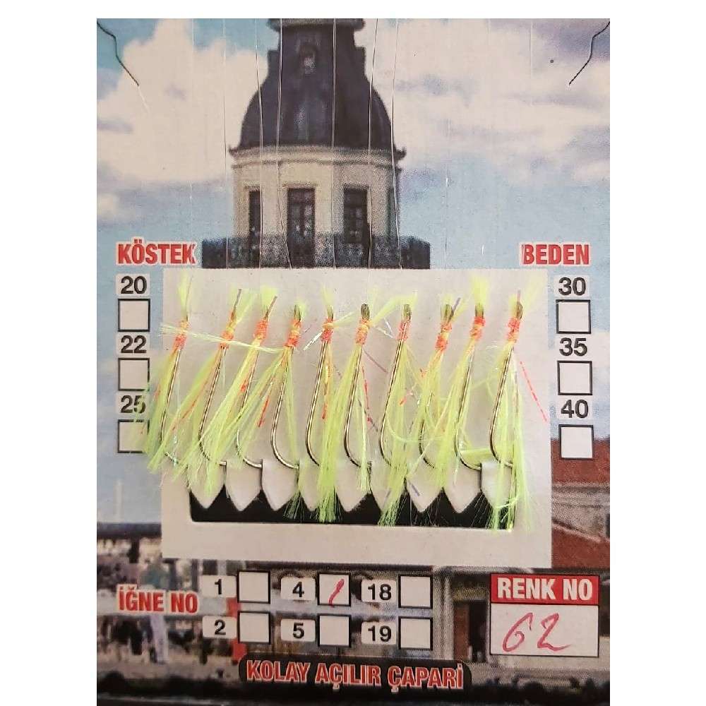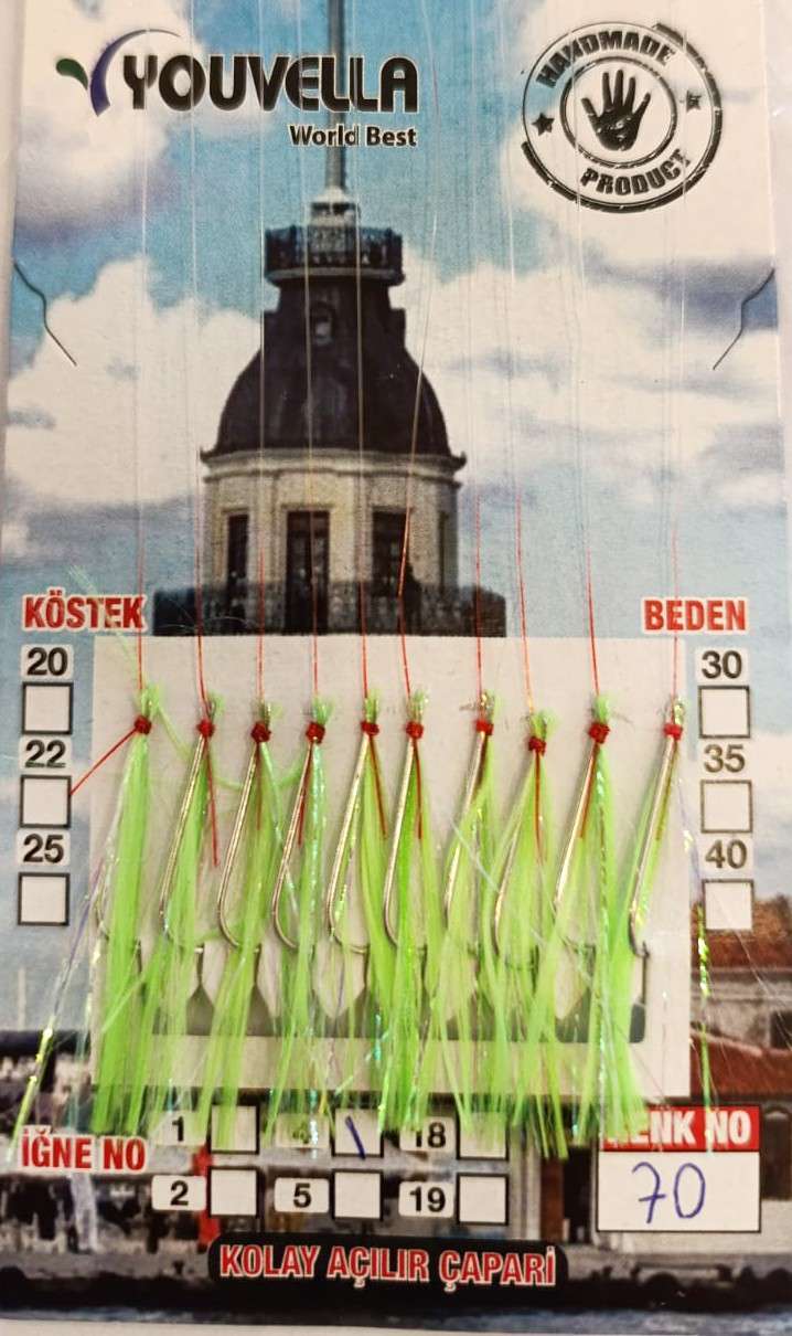 Çinekop Çaparisi UV-GLOW Simli 10 İğneli Kolay Açılan Çapari 025mm Beden x 035mm Köstek