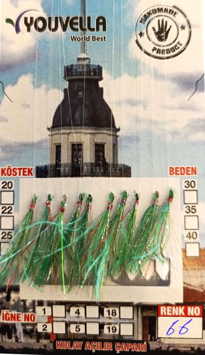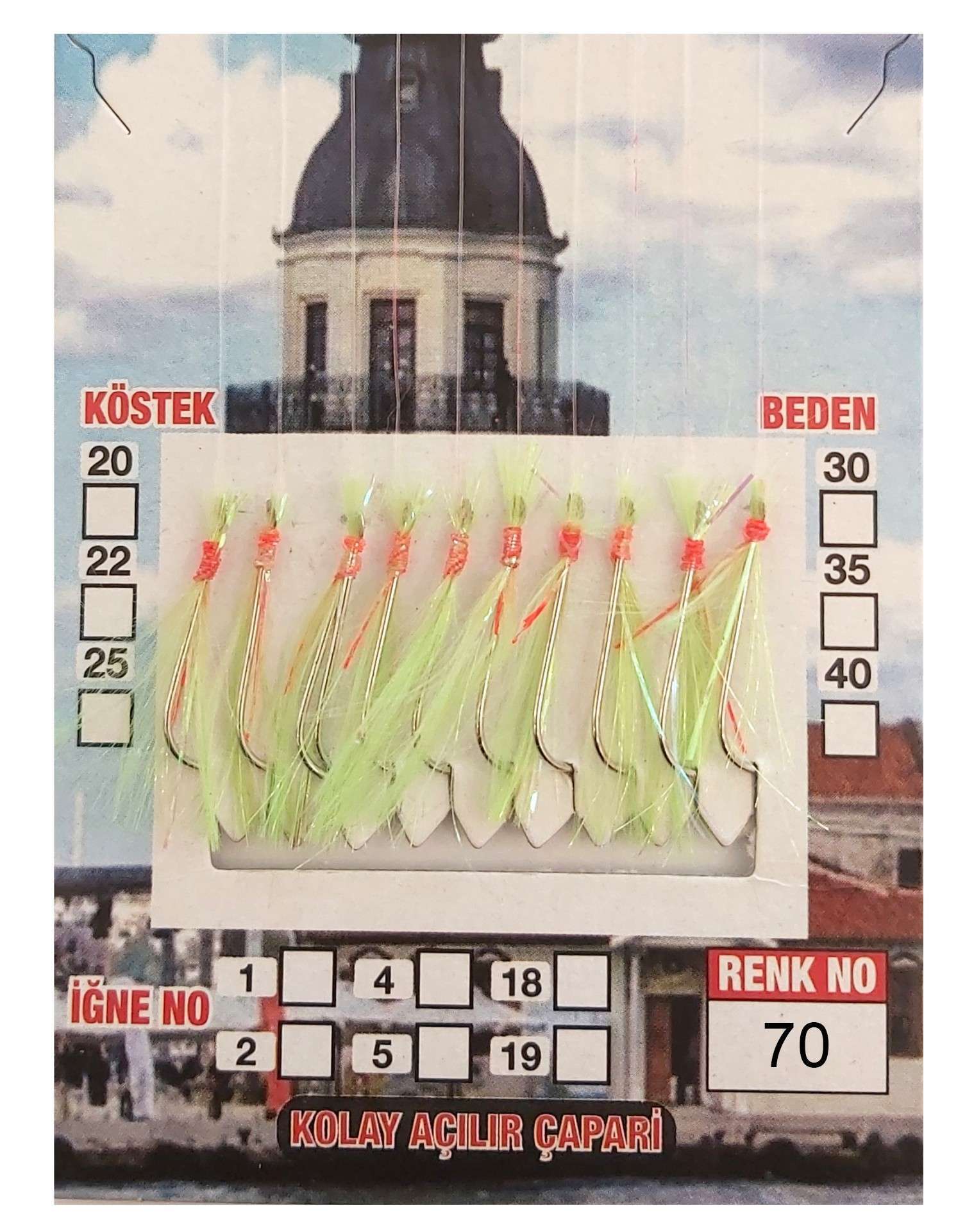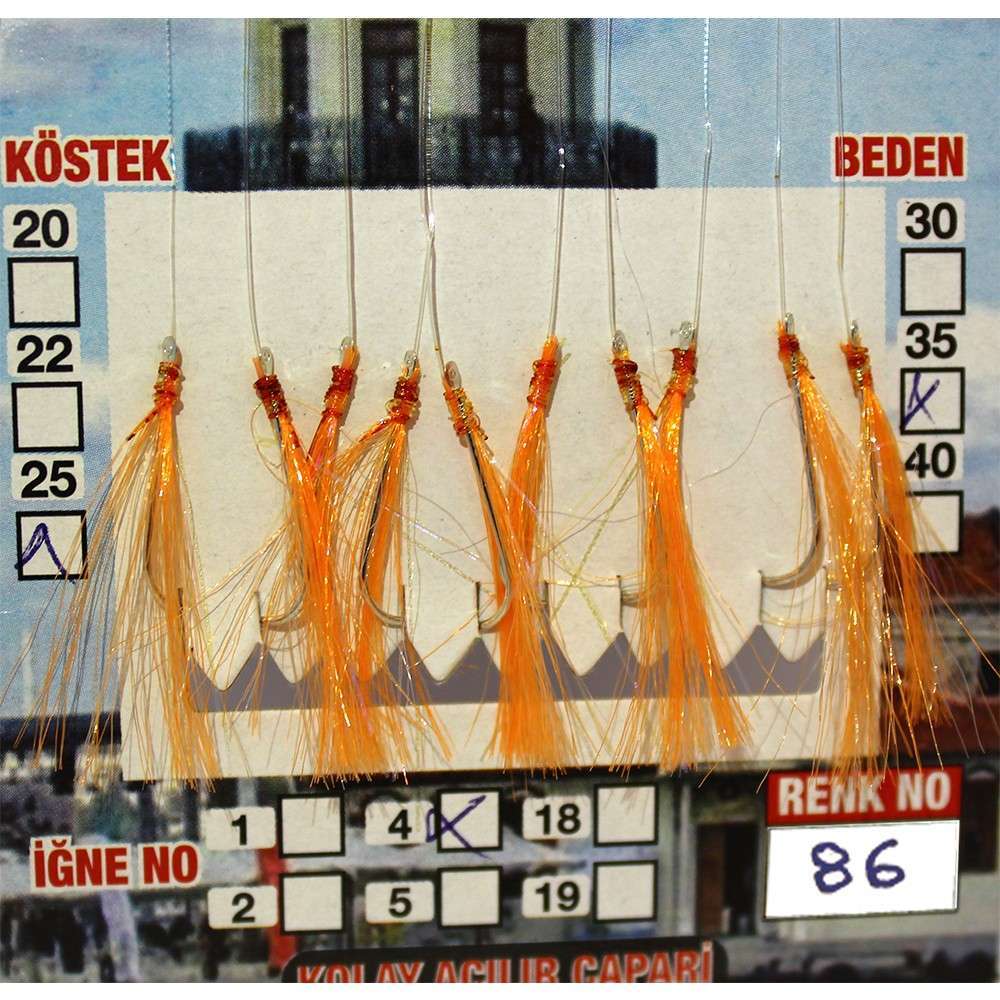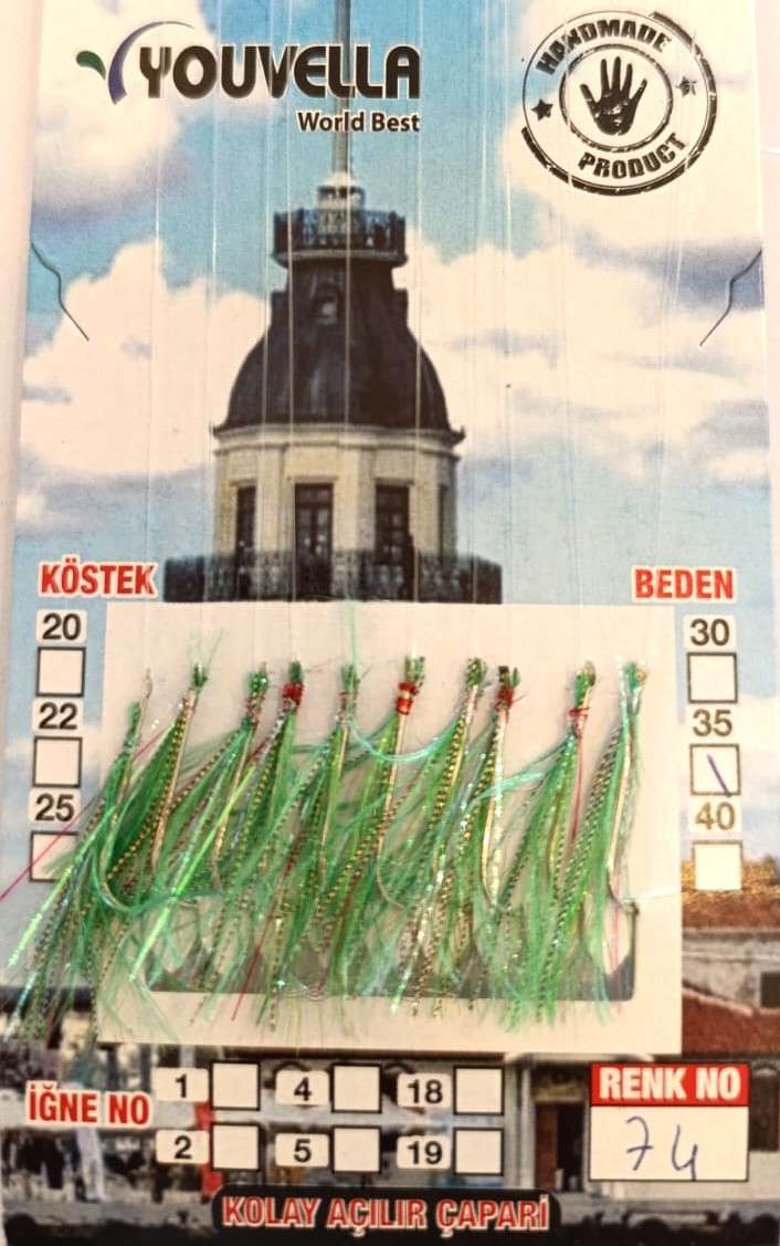 Çinekop Çaparisi UV-GLOW Simli 10 İğneli Kolay Açılan Çapari 025mm Beden x 035mm Köstek