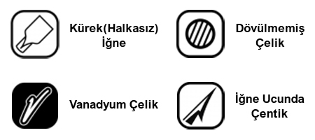 Vanadyum Çelik: VMC Vanadyum çelikten üretilen iğneler aynı hafiflikteki iğnelere göre %25’e kadar yükseltilmiş dayanıklılığa sahiptir. İnce uç yapısı itibariyle tasmalaması mükemmeldir.