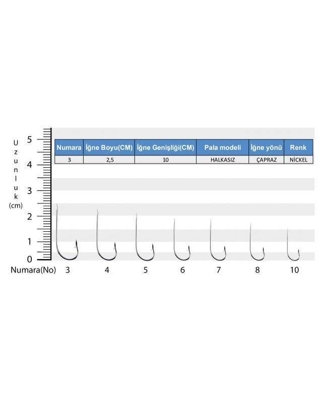 3, 4, 5 ve 6 numaraları Çinakop, Sarıkanat ve Lüfer mantarlı takımlarında; 7,8 ve 10 numaraları ise Çinakop ve İstavrit çaparilerinde kullanılabilir.